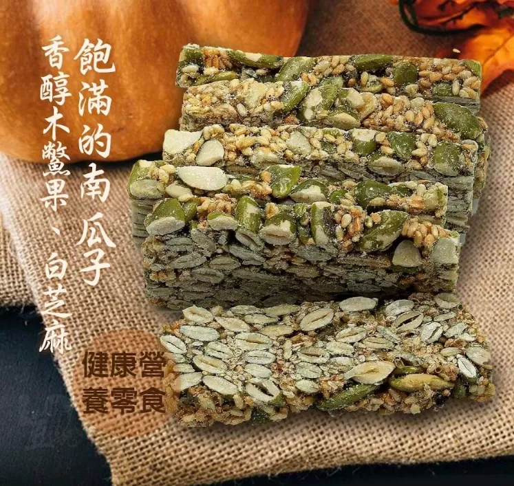 嚴選顆粒飽滿的清香南瓜子及香醇木鱉果、白芝麻,再淋上甜而不膩的麥芽糖