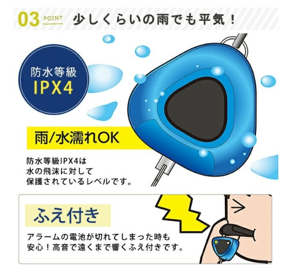 即使在下雨天被雨傘上的水滴淋濕,IPX4防水等級也能降低蜂鳴器損壞的風險。簡約時尚的設計,大人小孩都適合配帶使用。